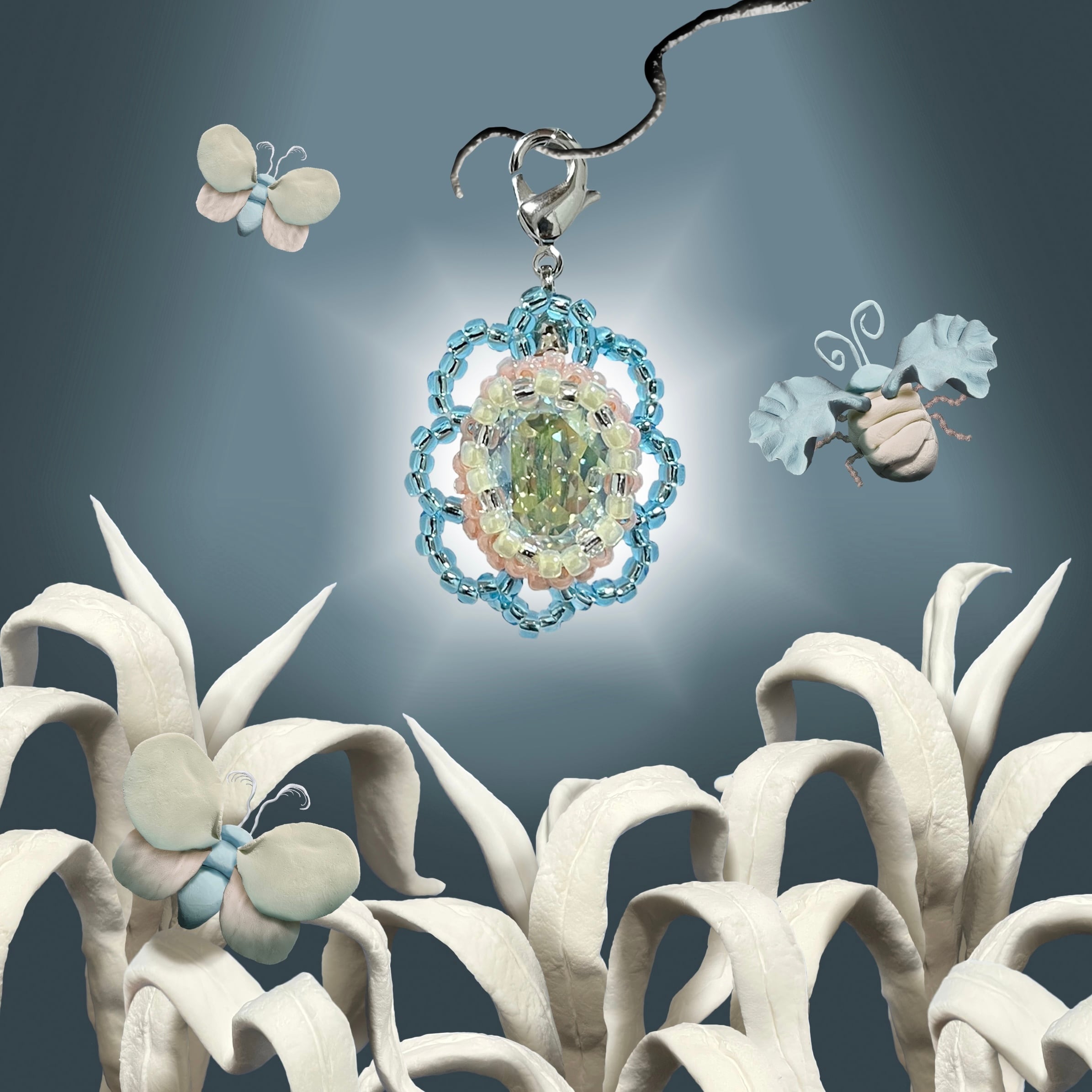 素材:クリスタルガラス,グラスビーズ,真鍮(金具)