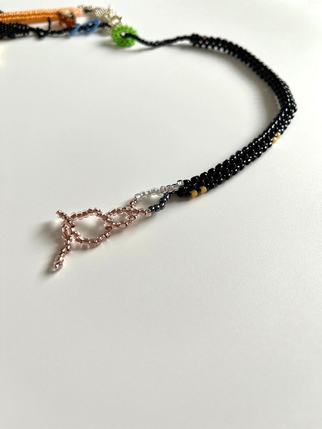 存在として、あるいは記憶として誰かの元を離れたものを寄せ集めたイメージのネックレス。